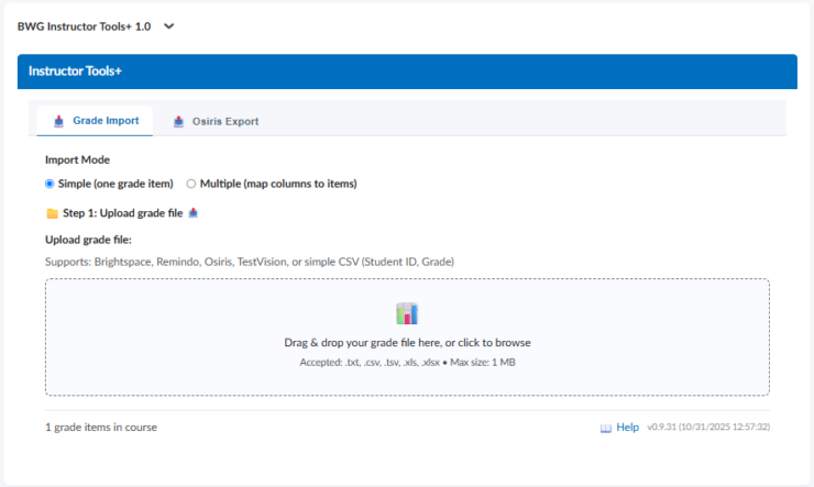 - Osiris Export: exporting grades from Brightspace in a format accepted for import into Osiris (see manual).