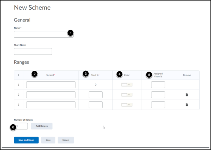 Now click on ‘Save and Close’ to save the new grading scheme. Your new grading scheme is now under Course Schemes.