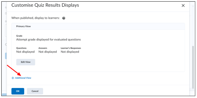 - Klik op ‘Additional View’ om een eigen weergave te maken. Voor elke quiz kan er gekozen worden om de standaardweergave of een zelfgemaakte te gebruiken.